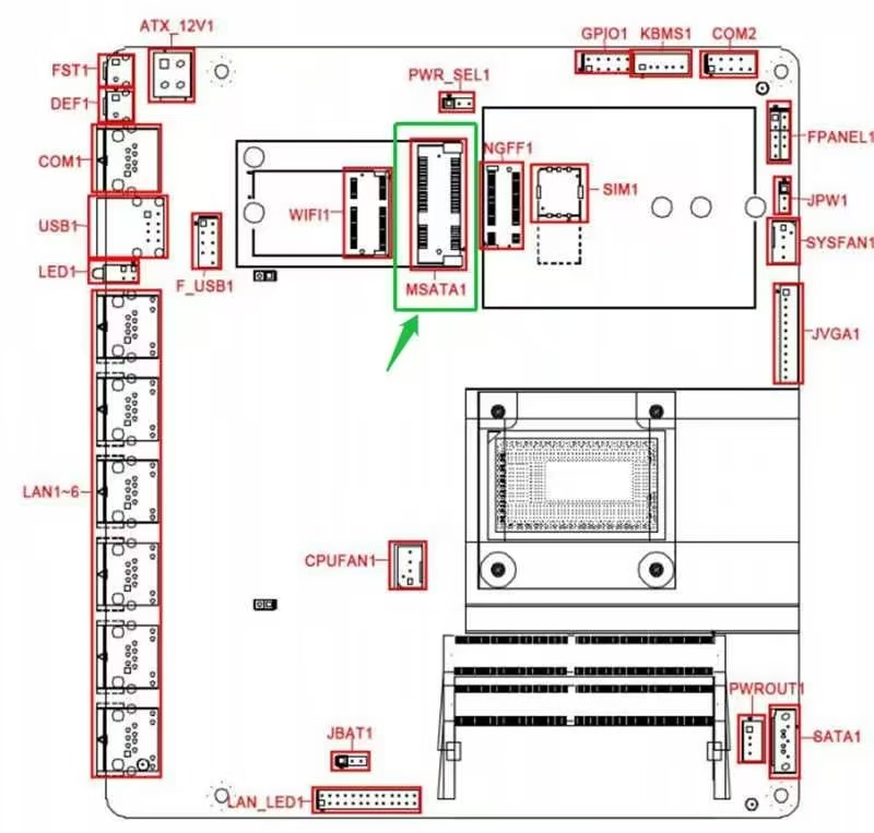 1* MSATA SSD, transmission rate up to 3Gbps only for Flash (Middle Slot see picture MSATA1) |